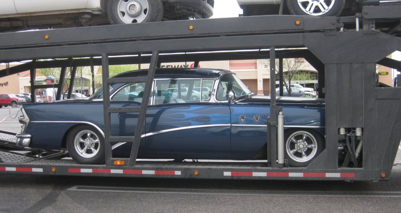 Impressions - the brakes take planning. Not sure if they are power-assisted at all, but drums all around is pretty leisurely. Car was pretty dirty from the truck ride, but I washed it and vacuumed and it worked out ok. Big problem on arrival - the door popper wouldn't pop the door open, and the RH door was too close to the trailer frame (though we tried that one too). The driver somehow got the LH door to pop open (no outside handles), so he got in and got it off the trailer.