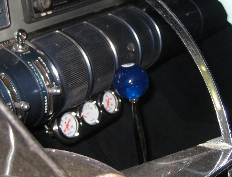 Ordered an Americanshifters shift knob. The stylized piston one in the car now has a universal thread adapter that is just worn out - the knob is loose. The way I see the interior is pretty much stock. Sure, there's the added-on gauges and the modern stereo, but other than that, the shifter is what makes it obvious that this isn't stock. I like the style of the stock interior anyway.