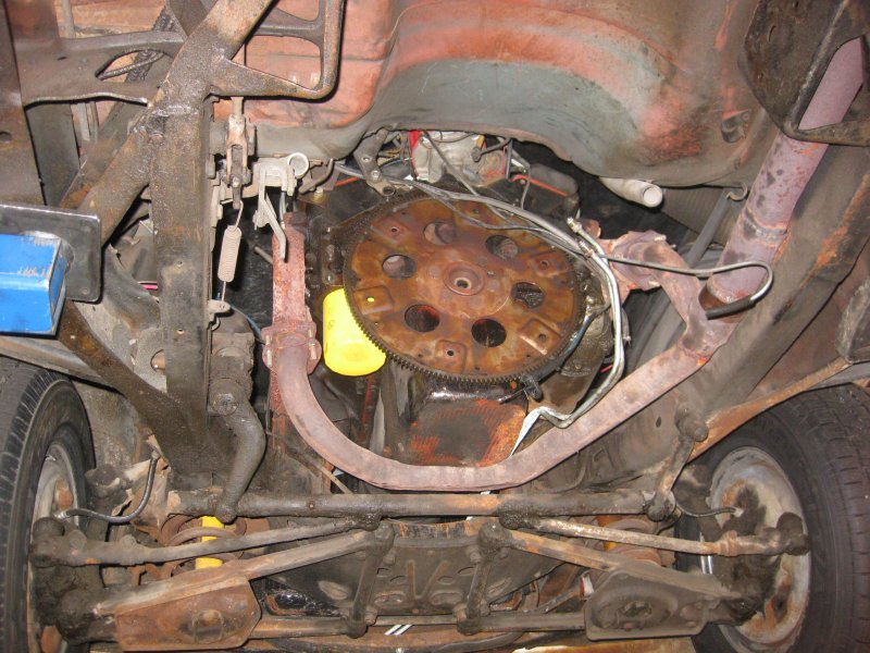 While it was up, got some photos for possible future use. This is behind the engine, where the trans goes.