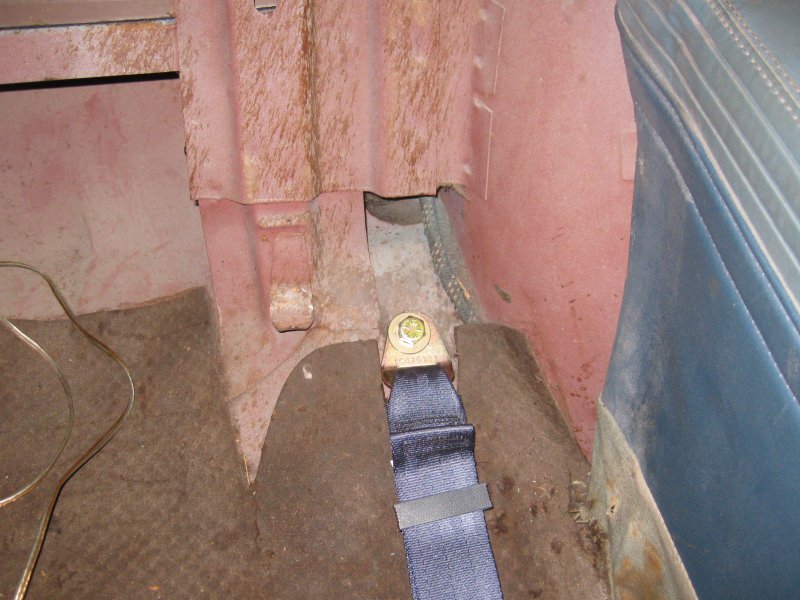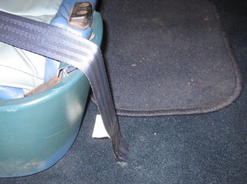Driver's seat, inboard belt location. A little fuzz still to clean up there.