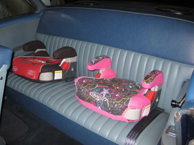 Spacing is just perfect for these little guys. I know a booster seat doesn't make these lap belts safer, but the boosters let them see better...
