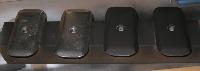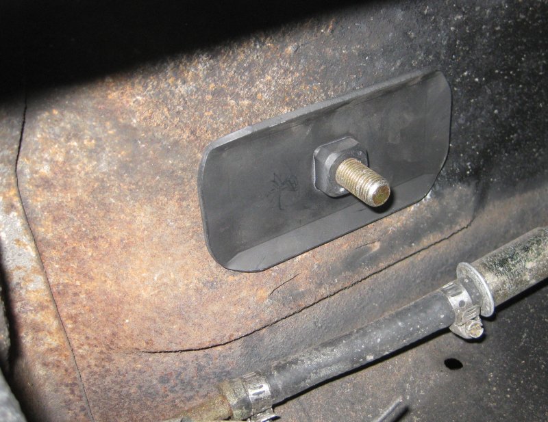 Trying to show that the belt backing plate is nestled up against a stiffening rib pressed into the floor pan. Have to base the choice of location on what is below the floor.