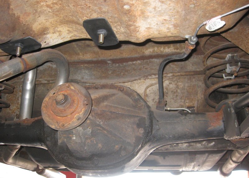 Rear axle. Also can see the clean black backing plates for the back seat seat belts.