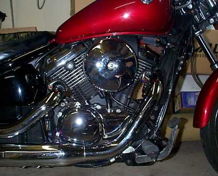After the airplane, I decided to try something else that I had not done before. I took the motorcycle safety course and license test 9/00, and tracked the classified ads until 3/01, and found this bike, a 1997 Kawasaki Vulcan 800 with about 1000 miles on it, and brought it home in March.
